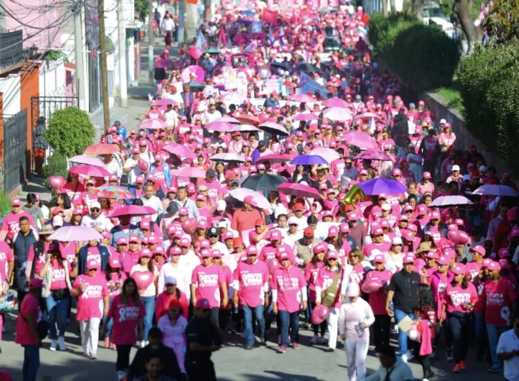 Valle de México, a a 19 de octubre de 2025. Con playeras y gorras color rosa, más de 3 mil mujeres y hombres participaron en la Caminata Estatal de Prevención del Cáncer de Mama en Ecatepec, evento que fue presidido por la alcaldesa Azucena Cisneros Coss, quien estuvo acompañada por la secretaria de Salud, Macarena Montoya Olvera, a fin de visibilizar y concientizar a la población sobre este mal, principal causa de muerte entre los tumores malignos.