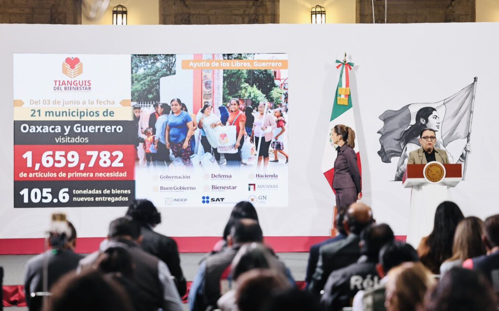 Valle de México, a 7 de octubre del 2025.- El Tianguis del Bienestar llegó a 21 municipios de Oaxaca y Guerrero, para entregar de manera gratuita, a 1 millón 659 mil 782 artículos nuevos y de primera necesidad a más de 55 mil 900 familias.