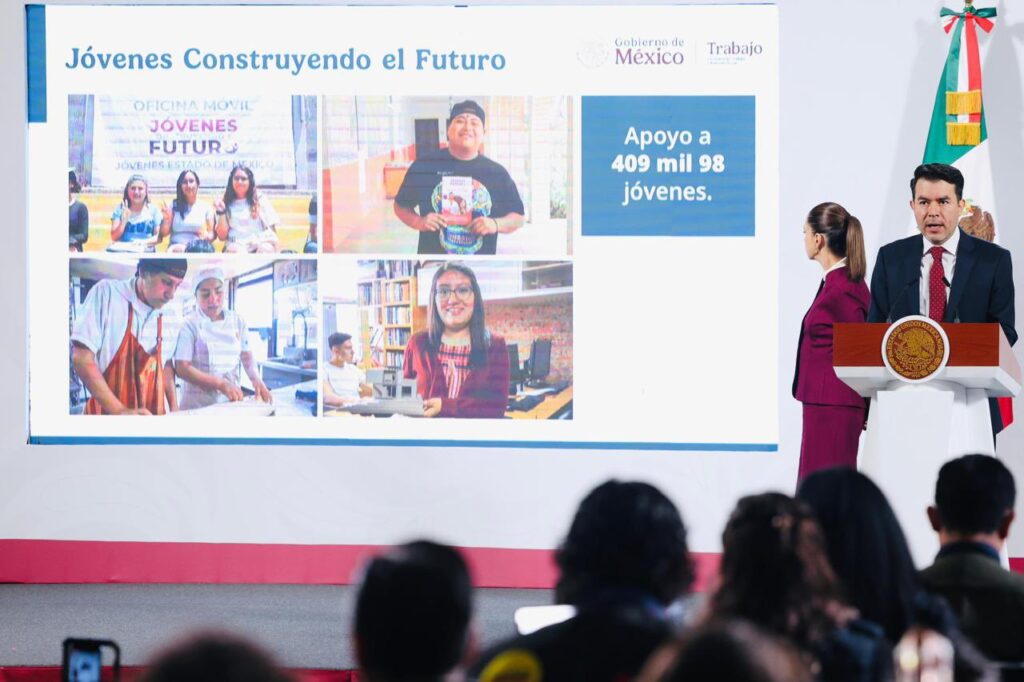 Puntualizó que este gobierno tiene un interés genuino por los jóvenes, por eso a través del Programa Jóvenes Construyendo el Futuro, a cargo de la Secretaría del Trabajo y Previsión Social, se otorga un apoyo mensual, capacitación, seguro médico y ofertas de trabajo a más de 409 mil personas.