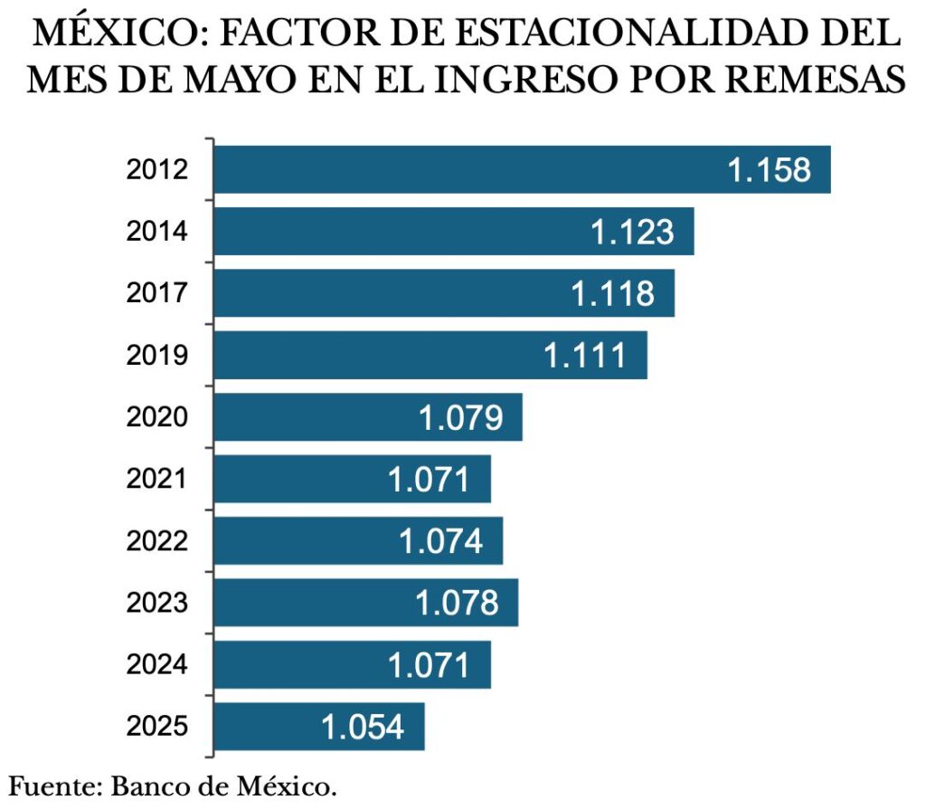 A esa situación hay que sumar las políticas agresivas antiinmigrantes del gobierno encabezado por Donald Trump, lo cual se agrega al escenario poco propicio para que se observe un crecimiento del ingreso por remesas en México como el registrado en los últimos diez años, con variaciones anuales de hasta 25.9 por ciento, como sucedió en el 2021 (52 mil 523 millones de dólares), y el récord máximo de 64 mil 745 millones de dólares en el 2024. Para el 2026 se estiman alrededor de 60 mil millones de dólares.