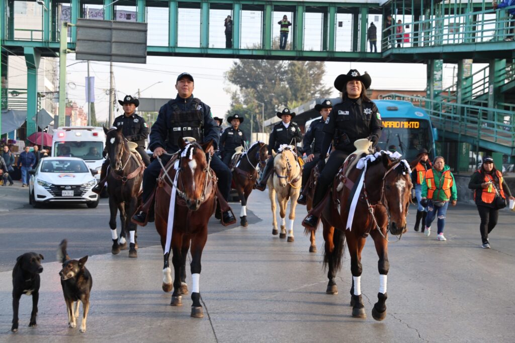 En la retaguardia iban los distintos agrupamientos de la policía municipal: Sectores, Metropolitana, Grupo de Operaciones Especiales, Unidad Canina y de Caballería, Unidad de Atención a Víctimas, Prevención del Delito y Célula de Búsqueda de Personas, acompañados de integrantes de la Fuerza de Tarea de la Secretaría de Marina.