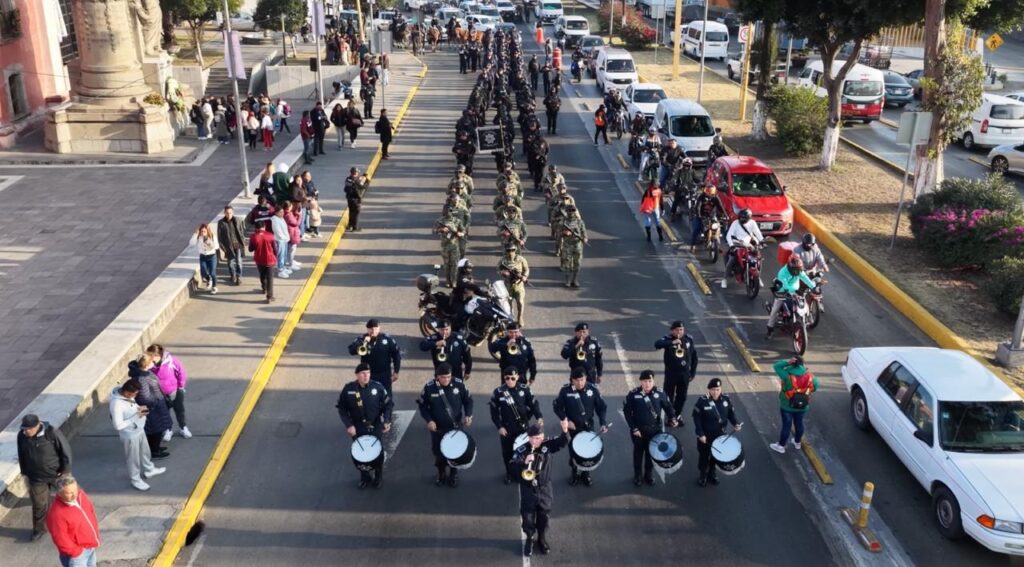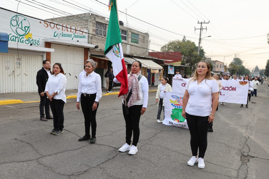 Posteriormente inició el desfile cívico militar, encabezado por Cisneros Coss y funcionarios municipales, estatales y federales, entre ellos Amellali Caballero Téllez y la teniente Angélica Córdoba Castillejos, representantes de la Secretaría de Gobierno del Estado de México y de la Secretaría de Marina, respectivamente; Mario Guerrero López, fiscal regional de Ecatepec, además de diputados locales, síndicos y regidores, y representantes de la Diócesis de Ecatepec.