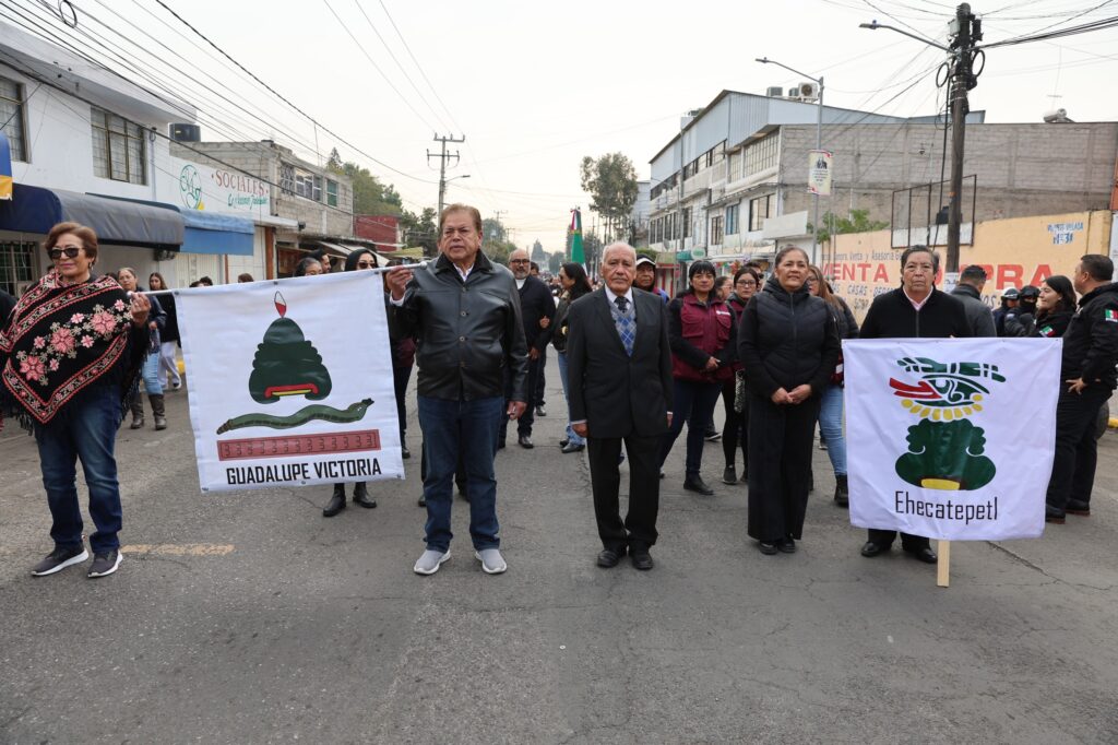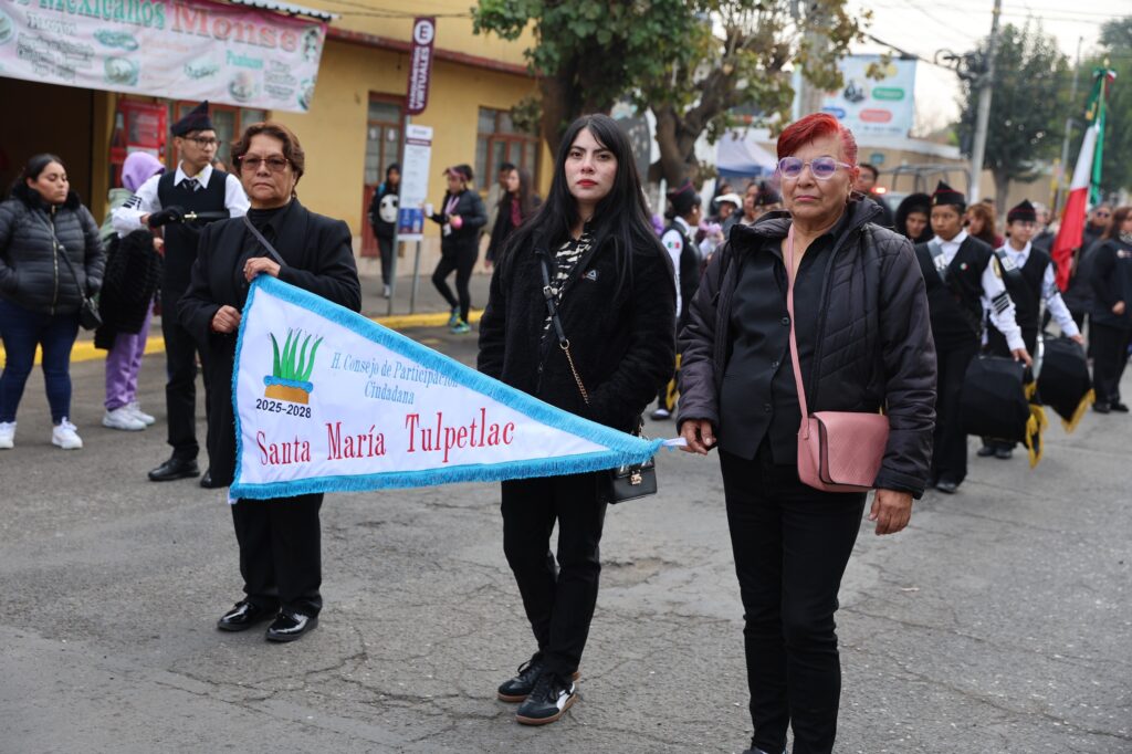 También participaron contingentes de los nueve pueblos originarios: San Cristóbal, Santa Clara Coatitla, San Pedro Xalostoc, Santa María Tulpetlac, Santo Tomás Chiconautla, Santa María Chiconautla, Guadalupe Victoria, San Isidro Atlautenco y San Andrés de la Cañada, al igual que representantes de las comunidades San Agustín y Jardines de Morelos.