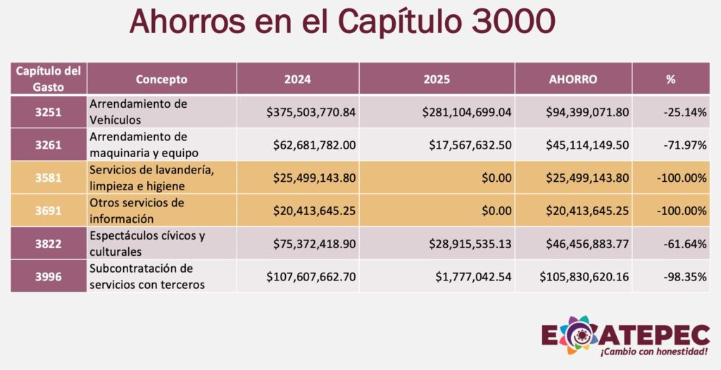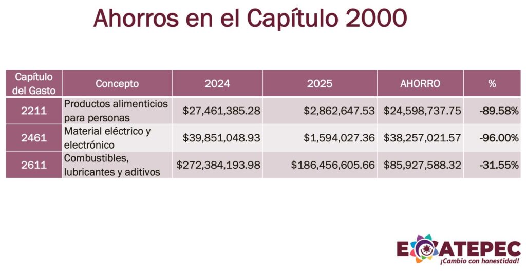 Mencionó que tan solo el Ayuntamiento recuperó 547 millones de pesos “que antes terminaban en fugas, en privilegios y en corrupción”, además de otros recursos recuperados en el DIF municipal, el organismo de agua Sapase y el Instituto Municipal de Cultura Física y Deporte de Ecatepec de Morelos (Imcufideem), para un total de casi mil millones de pesos de ahorros.
