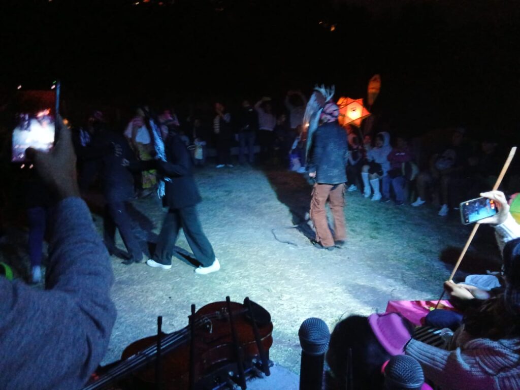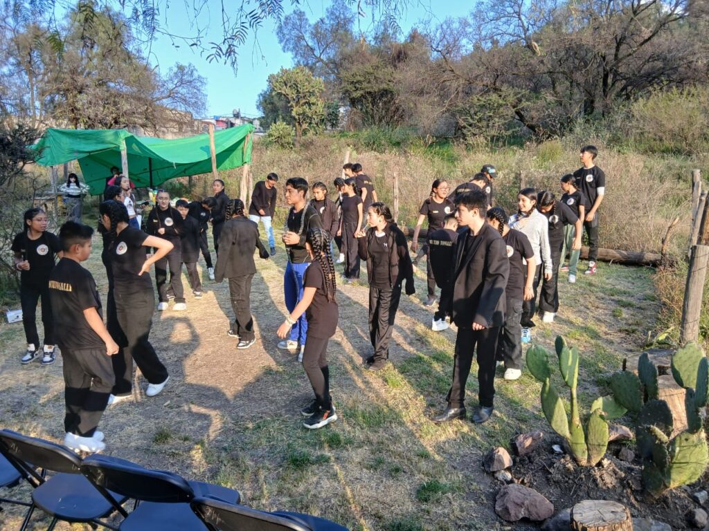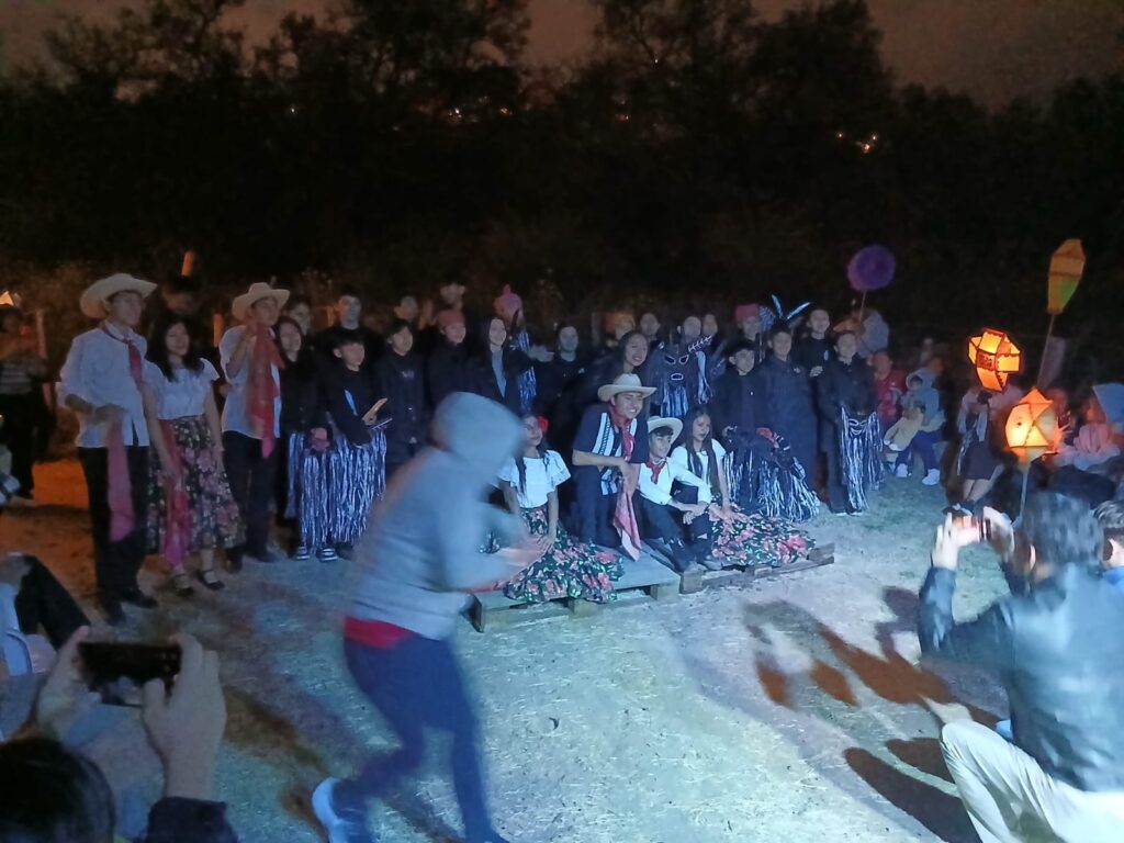 El director de la Academia de Artes Mictlan y el subdirector de la misma, Edgar Leyva y Abel Jiménez, respectivamente, dirigieron a los bailarina de los grupos Diablos de Cuajinicuilapan y Sones de Artesa, quienes pese al terreno agreste gastaron suela y se bañaron de polvo (limpio) en el huerto que administran Franature e Iniciativa Edomex-Siembra para dar su mejor espectáculo a los cientos de asistentes de diversas alcaldías no solo del estado de México sino también de la Ciudad de México.