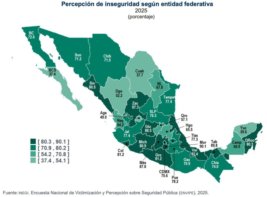 Ese porcentaje fue mayor al reportado en el 2023, que fue de 40.7 por ciento, de acuerdo con los resultados de la Encuesta Nacional de Victimización y percepción sobre Seguridad Pública (ENVIPE) 2025 difundido por el INEGI.