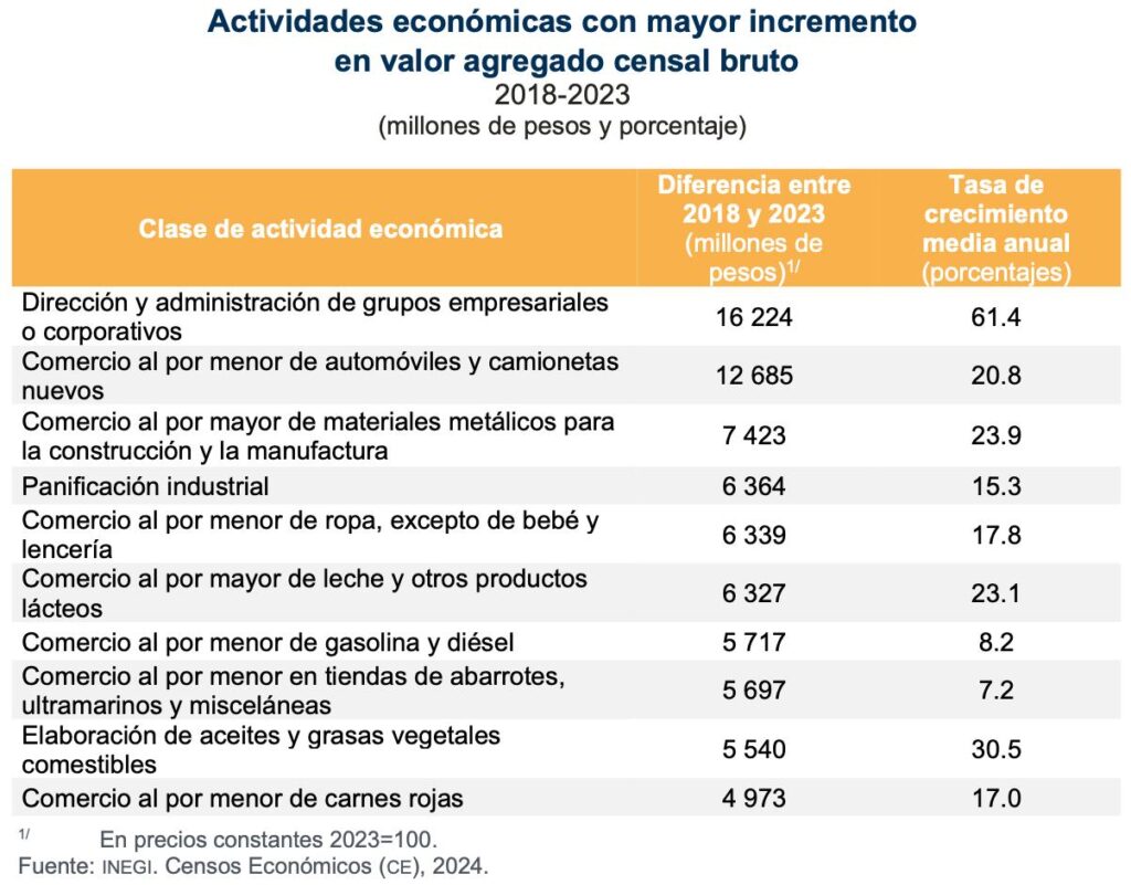 Su contribución al valor agregado censal bruto —es decir, lacdiferencia entrelo que una unidad económica produce y lo que gasta en materiales y serviciosfue de 18.8 por ciento del total.