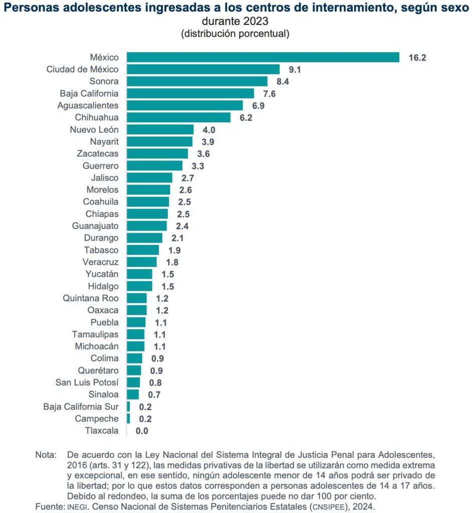 ***En el 2023 se incrementó la cifra de jóvenes en esa situación: INEGI; nueve de cada diez que ingresaron a centros de internamiento son hombres