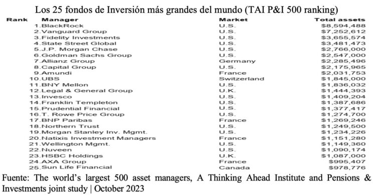Fuente: The world’s largest 500 asset managers, A Thinking Ahead Institute and Pensions & Investments joint study | October 2023