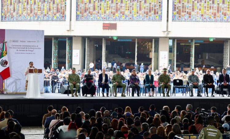 Valle de México, a 9 de julio del 2025.- En el Día Internacional de la Destrucción de Armas de Fuego, México envía un mensaje claro al mundo: mientras en algunas regiones del orbe la violencia escala, aquí el pueblo elige construir la paz; se trabaja en el territorio atendiendo las causas de la violencia, con acciones como “Sí al Desarme, Sí a la Paz”, resaltó la secretaria de Gobernación, Rosa Icela Rodríguez.