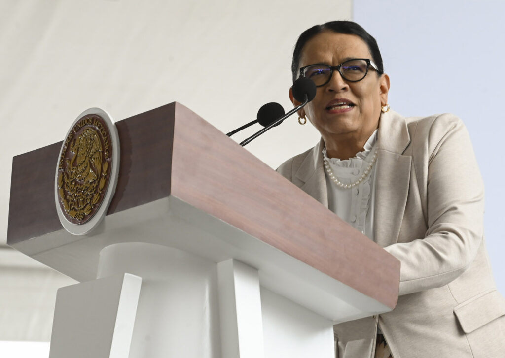 “El gobierno de la Presidenta Claudia Sheinbaum lo lleva a cabo a través de la frase: ´Más territorio, menos escritorio´. Por eso, decimos que es la Presidenta de la paz”, dijo la secretaria federal.