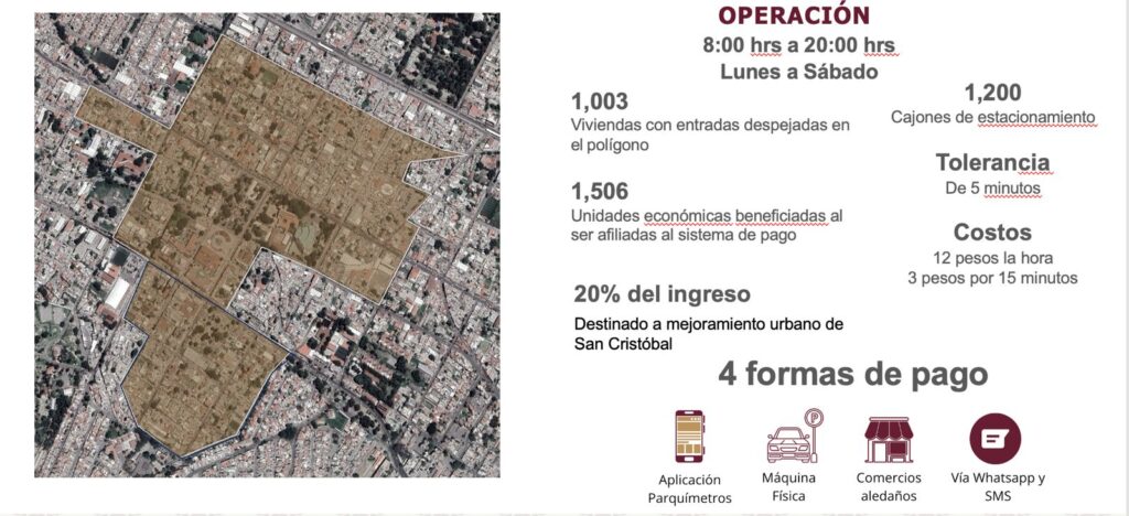 Valle de México, a 27 de mayo de 2025. A partir del próximo 2 de junio iniciarán operaciones los parquímetros en el centro de San Cristóbal, lo que forma parte de un plan integral de reordenamiento de esta zona, considerada el corazón de Ecatepec, cuyo objetivo principal es garantizar el derecho a la movilidad de la población.
