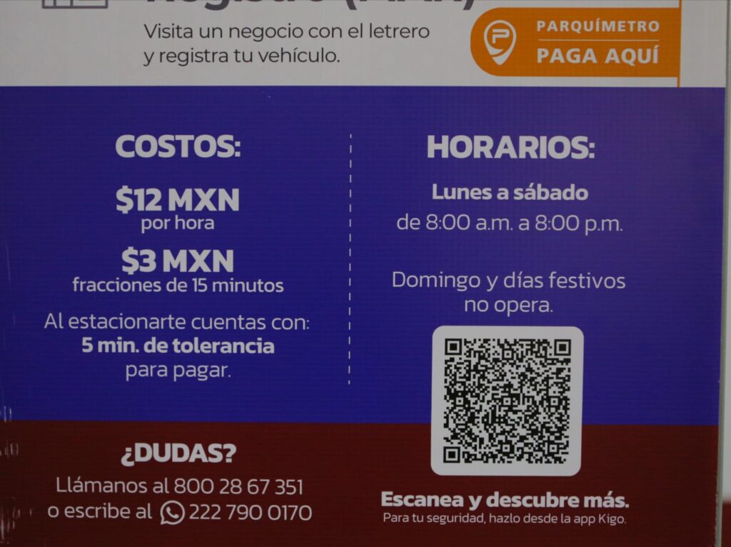 Agregó que a través de una aplicación gratuita los usuarios podrán consultar en tiempo real la disponibilidad de espacios y tarifas, y habrá 10 minutos de tolerancia para el pago correspondiente, que se realizará en máquinas físicas, a través de la aplicación móvil, en comercios autorizados o por mensaje de WhatsApp.