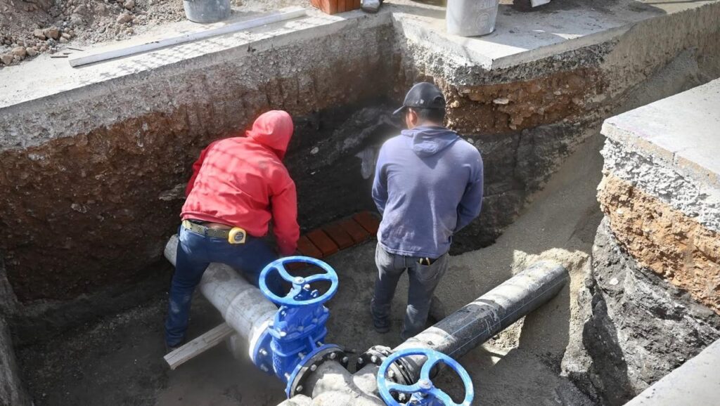 De igual forma, se atendió una fuga en la línea principal de agua potable en Casas Geo Sierra Hermosa, donde se sustituyó una tubería dañada de seis pulgadas para restablecer el servicio. Continuaron también los trabajos de conexión y construcción de la caja válvula para la interconexión de la línea de agua potable en el fraccionamiento Real del Sol, obra que permitirá fortalecer el suministro en la zona.