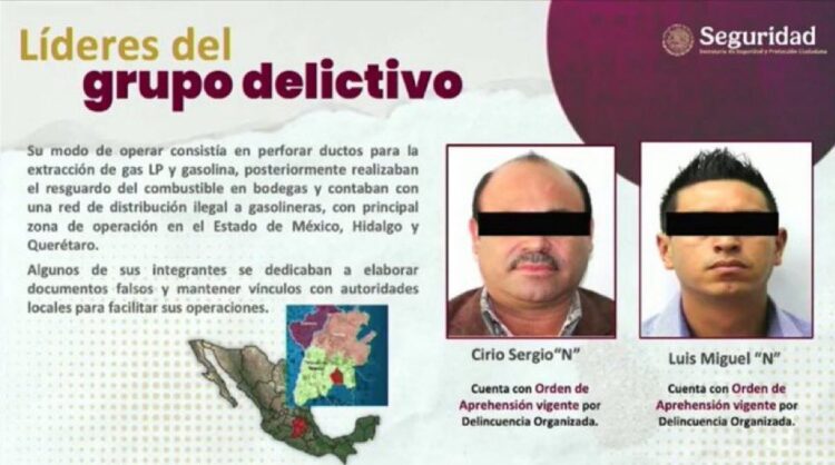 Dicho sujeto cuenta con una orden de aprehensión por delincuencia organizada con la finalidad de cometer delitos en materia de hidrocarburos, además se detuvo a Diego “N”, identificado como operador logístico y financiero, quien también cuenta con orden de aprehensión vigente por la misma causa.