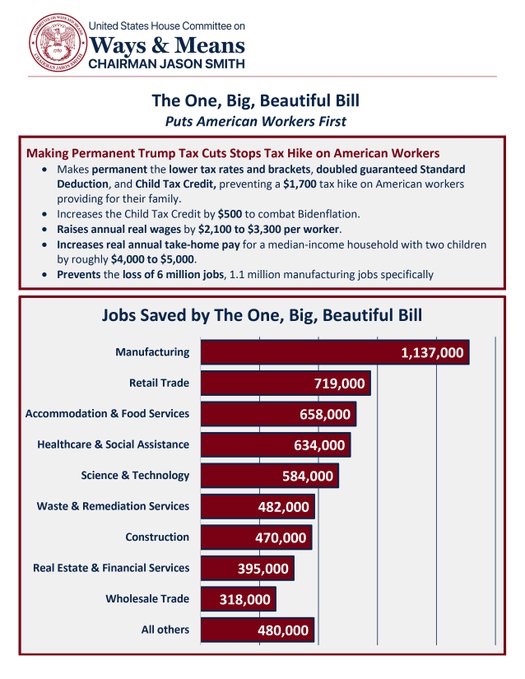 Además, aseguraron que la permanencia de los recortes de impuestos de Trump de 2017 salvará 6 millones de empleos, incluyendo 1.1 millones en el sector manufacturero.