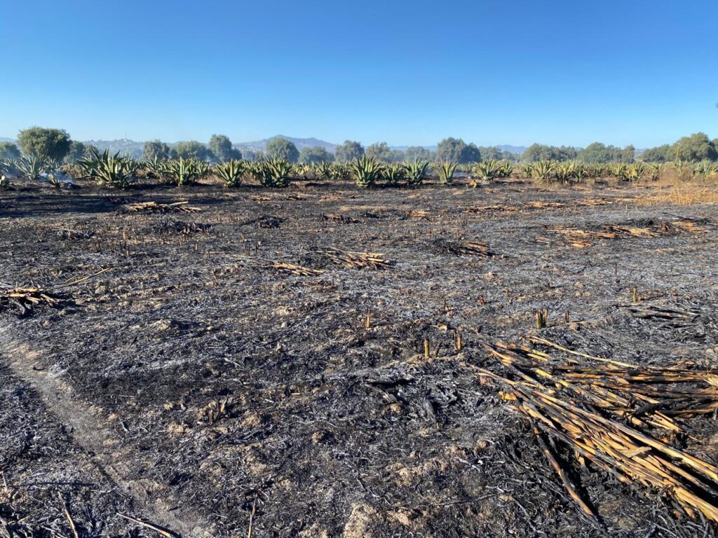 Valle de México, a 30 de noviembre del 2024.- Alrededor de 30 hectáreas con la siembra de varios agroalimentos, entre los cuales figuran maíz, avena, cebada, tuna y maguey pulquero y de los cuales el Estado de México destaca entre los principales productores del país, fueron consumidas por un incendio que fue sofocado entre productores y autoridades de protección civil del municipio de Nopaltepec.