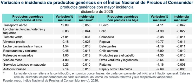 En su variación mensual, en diciembre el INPC aumentó 0.28 por ciento, menor al 0.38 por ciento que tuvo en el mismo mes de 2024.