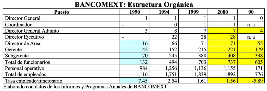 En este caso, resulta emblemático el TPP-11, en que el déficit, en los 7 primeros años de vigencia, resultó superior a los 25 años precedentes; así como la operación de BANCOMEXT, organismo que en sólo 10 años, tuvo un crecimiento de 605 funcionarios con el supuesto objetivo de crear una sólida plataforma exportadora.