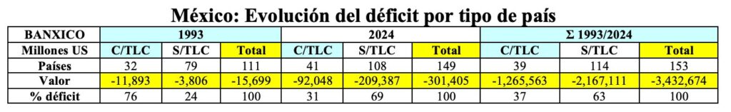Adicionalmente, sin que aún entrara en vigor el TLCAN, los funcionarios mexicanos, con el Doctor Jaime Serra Puche como “pionero y maestro del libre comercio”, negociaron TLC’s con Bolivia, Colombia, Venezuela y Costa Rica, en lugar de definir una estrategia que nos permitiera posicionarnos en el mercado del TLCAN, situación que fue empeorada con la firma de TLC’s con otros 48 países. Esto generó una enorme dispersión de esfuerzos y el debilitamiento de nuestras fortalezas, lo que se manifiesta en el creciente número de países con los que registramos un déficit comercial.