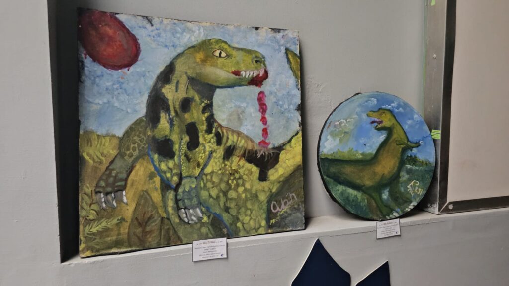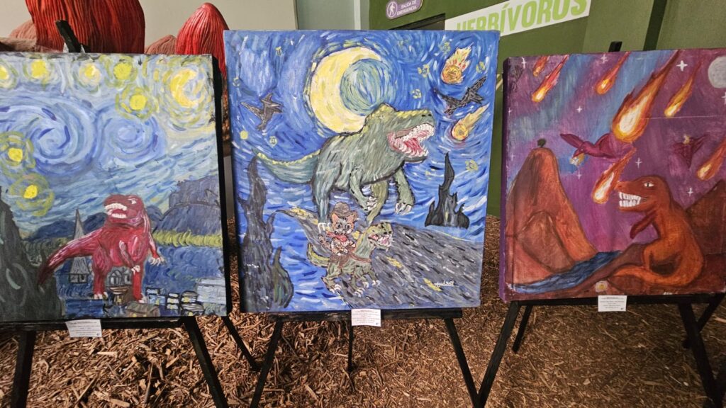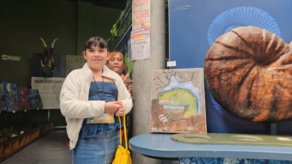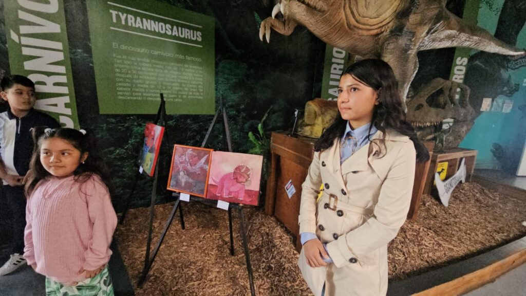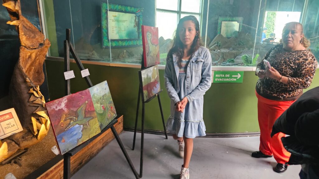 Valle de México, a 20 de julio de 2025. Materiales reciclados, pinceladas de colores y mucha imaginación dieron forma a 19 cuadros de dinosaurios que presentaron niñas, niños y adolescentes de 6 a 14 años de edad en el Museo Jurásica, ubicado en el Parque Ecológico Ehécatl, donde el arte y la conciencia ecológica se conjugaron en esta exposición de pintura que se podrá visitar durante un mes.