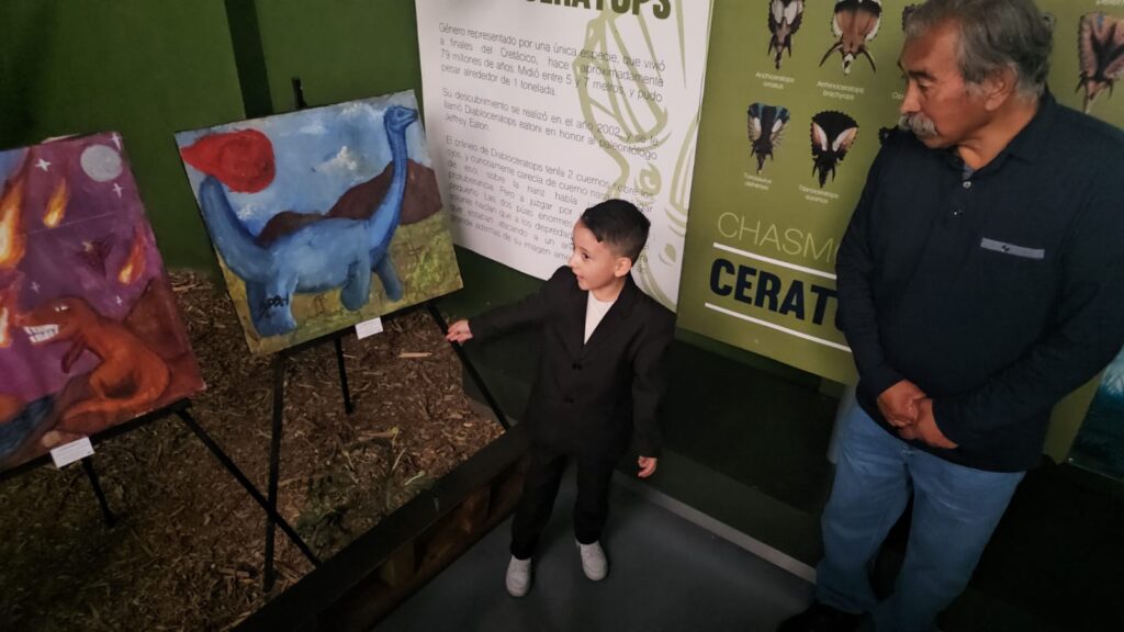 Juan García Murillo, director del Museo Jurásica, sostuvo que el arte y la cultura se conjugan en las pinturas de dinosaurios que realizaron los menores y destacó el reciclado de materiales.