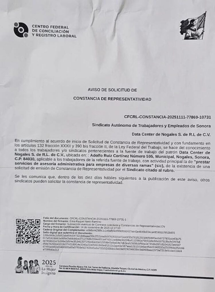 Las denuncias señalan a liderazgos sindicales vinculados a la Confederación Autónoma de Trabajadores y Empleados de México (CATEM) en la entidad, particularmente a Carolina Lara Moreno, Marisela Parra Martínez y Brenda Esquer Palma, por promover solicitudes de constancias de representatividad con firmas presuntamente falsificadas, sin conocimiento ni consentimiento de los trabajadores. Dichas constancias son utilizadas para exigir la firma de contratos colectivos y emplazar a huelga, generando presión económica directa sobre las empresas.