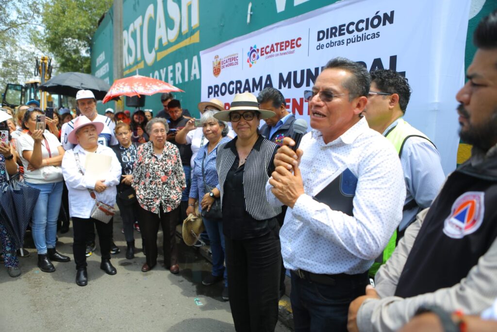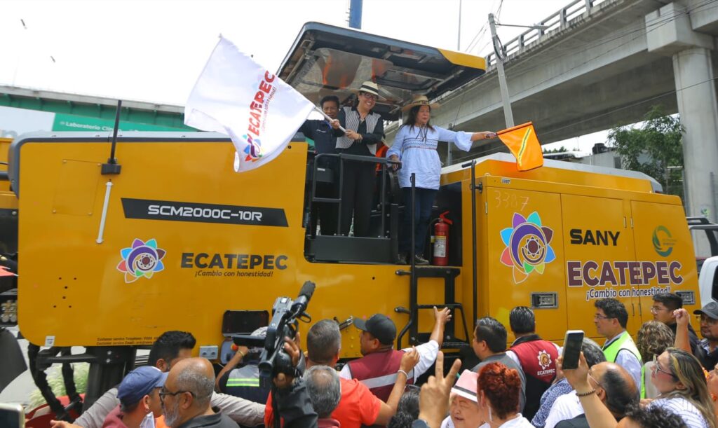 Valle de México, a 12 de agosto de 2025. A la colonia Altavilla llegó el tren de repavimentación adquirido por el gobierno de Ecatepec para dar mantenimiento a calles y avenidas del municipio; en el lugar, la alcaldesa Azucena Cisneros Coss dijo a los vecinos “ustedes son las madrinas y los padrinos” y confió en que va a cerrar el año con un gran programa de obras en vialidades.