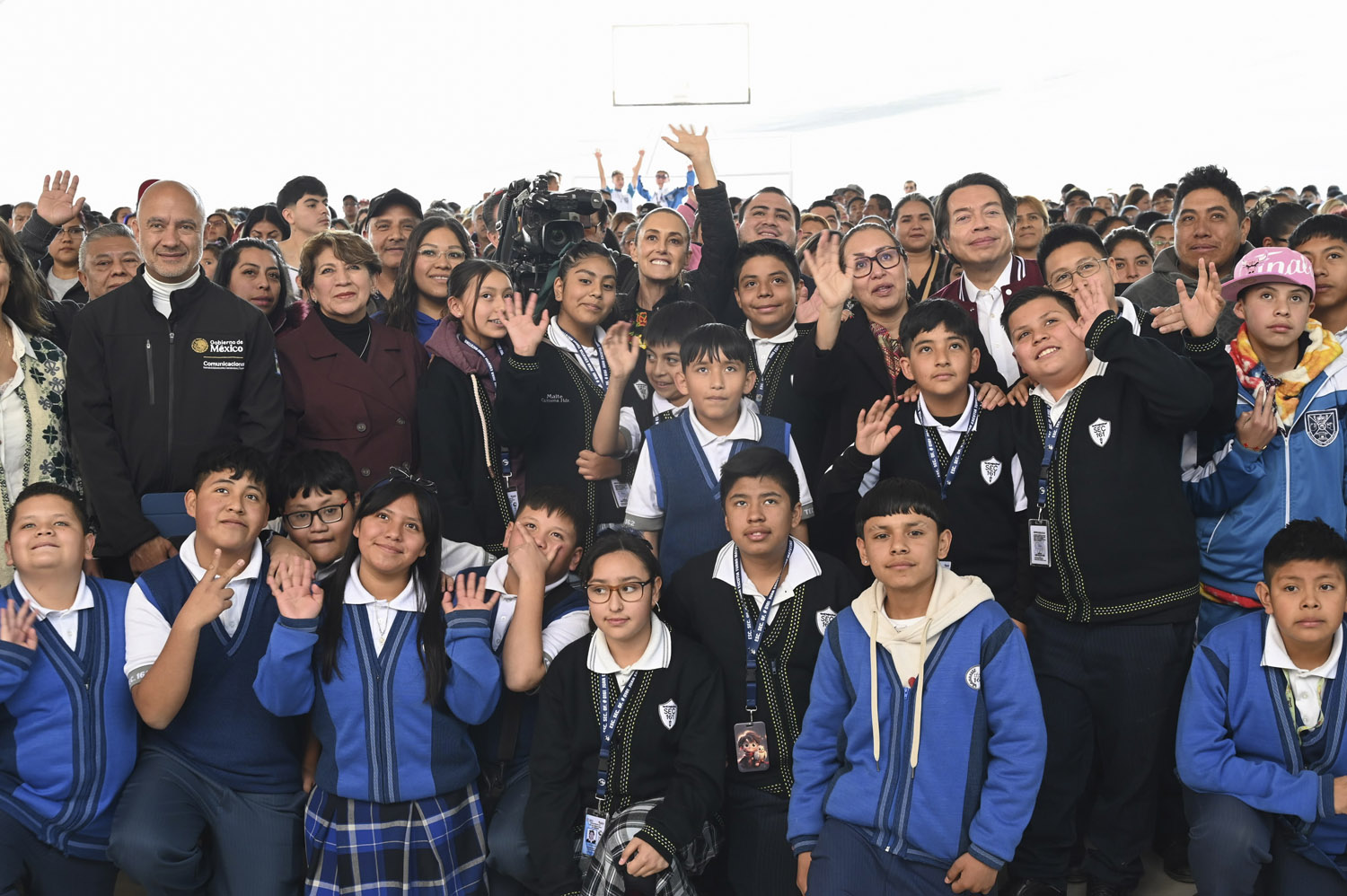 En Ecatepec, Estado de México, la Presidenta Claudia Sheinbaum Pardo encabezó la supervisión de la construcción de un nuevo Bachillerato Tecnológico, que será inaugurado en febrero, e hizo entrega de tarjetas de la Beca Rita Cetina para estudiantes de secundaria, a quienes recordó que este apoyo es un derecho permanente que llegó con la Cuarta Transformación.