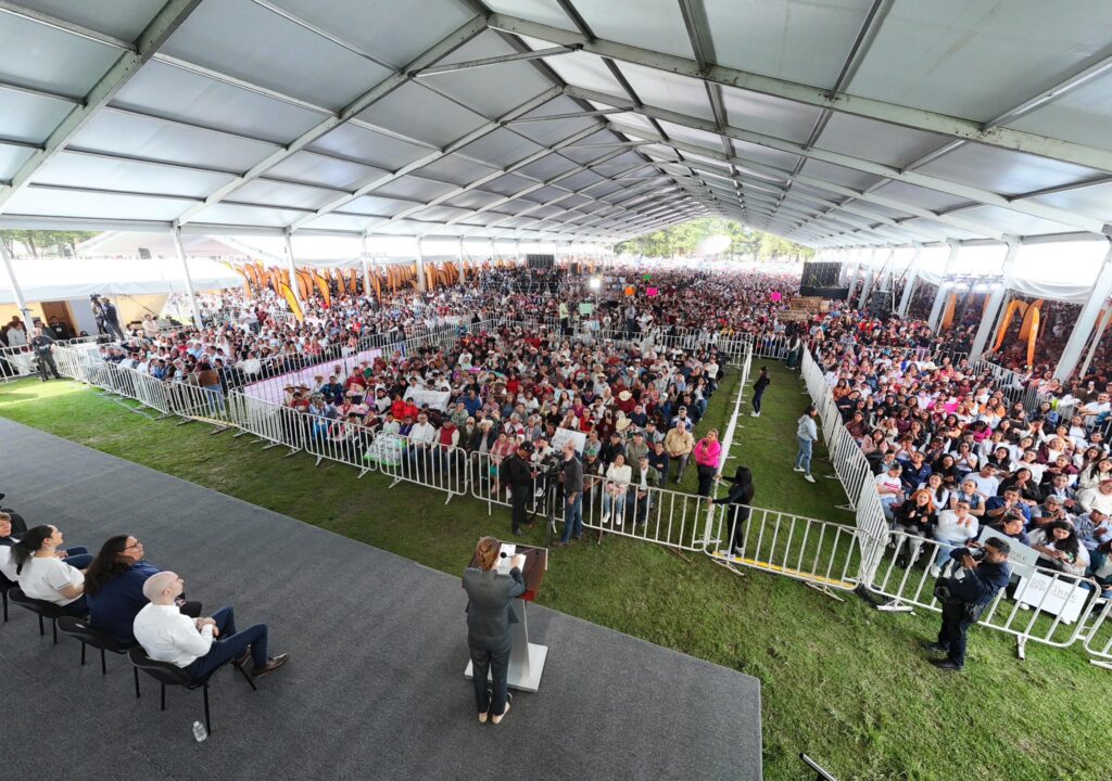 La gobernadora del Estado de México, Delfina Gómez Álvarez, agradeció acciones como la puesta en marcha del Plan Integral para la Zona Oriente del Estado de México, la asignación de presupuesto directo a los pueblos originarios y la capacidad de la Presidenta para lograr un objetivo común: garantizar el bienestar de las y los mexiquenses.