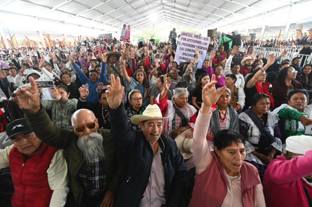 Como parte de su gira nacional de rendición de cuentas, informó que, en el Estado de México, —entidad número 16 que visita— 3 millones 800 mil personas reciben algún Programa para el Bienestar, de manera directa, sin intermediarios y sin condicionamientos políticos como se hacía en los gobiernos neoliberales.
