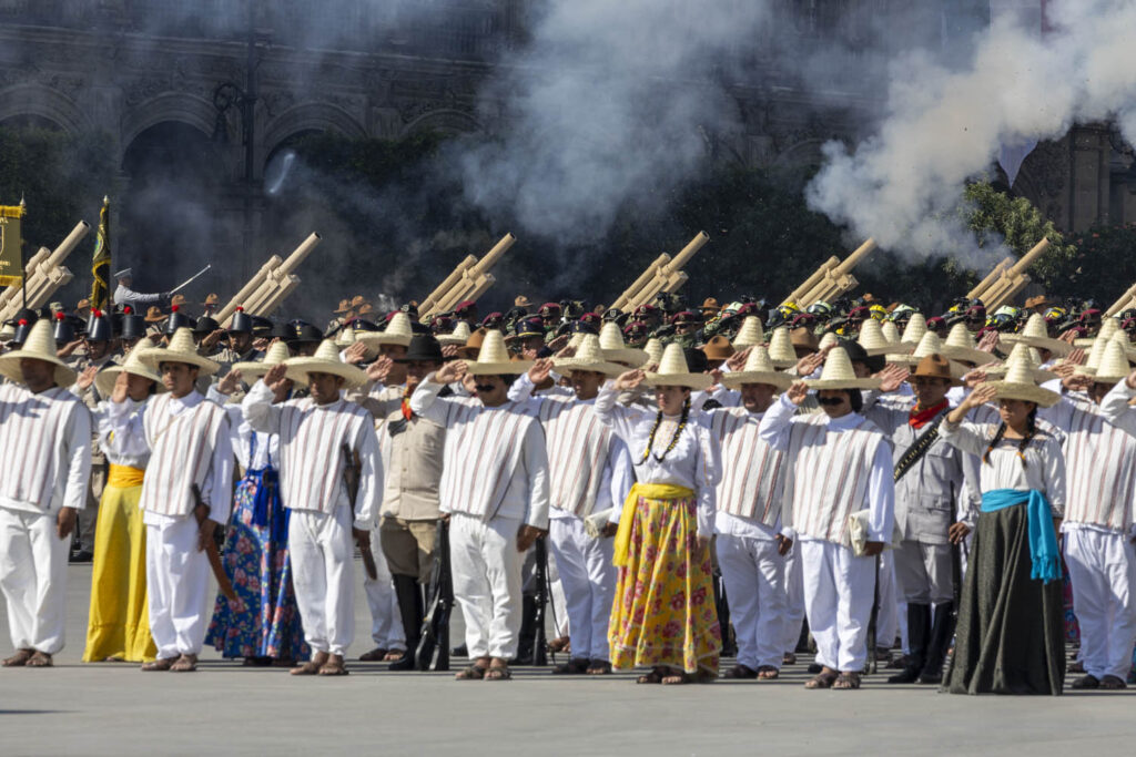 La Jefa del Ejecutivo Federal, acompañada por los secretarios de la Defensa Nacional, general Ricardo Trevilla Trejo, y de Marina, el almirante Raymundo Pedro Morales Ángeles, realizó el izamiento de la bandera monumental, asimismo pasó revista a las tropas. Como parte de la conmemoración, la Presidenta presenció la declamación “Lealtad: Ayer y Hoy” a cargo de dos cadetes del Heroico Colegio Militar, la escenificación de la Revolución Mexicana a cargo de mil 910 integrantes del Ejército, Fuerza Aérea y Guardia Nacional, así como de un popurrí de bailables revolucionarios por parte del Mariachi de la Secretaría de Defensa Nacional.