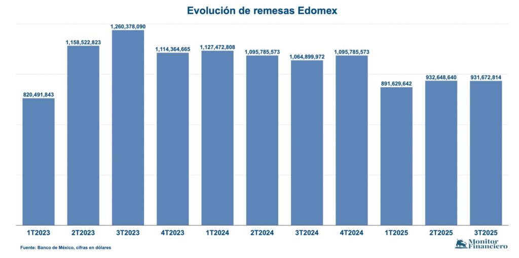 Valle de México, a 18 de noviembre del 2025.- Los municipios con mayor recepción de remesas en el Estado de México reportaron disminuciones de hasta 35 por ciento en el período enero-septiembre de este año en comparación con el mismo período del año anterior, en una de las caídas más pronunciadas en los últimos años aunque eso no ha impedido que la entidad permanezca en la lista de los cinco estados con los mayores flujos de dólares.
