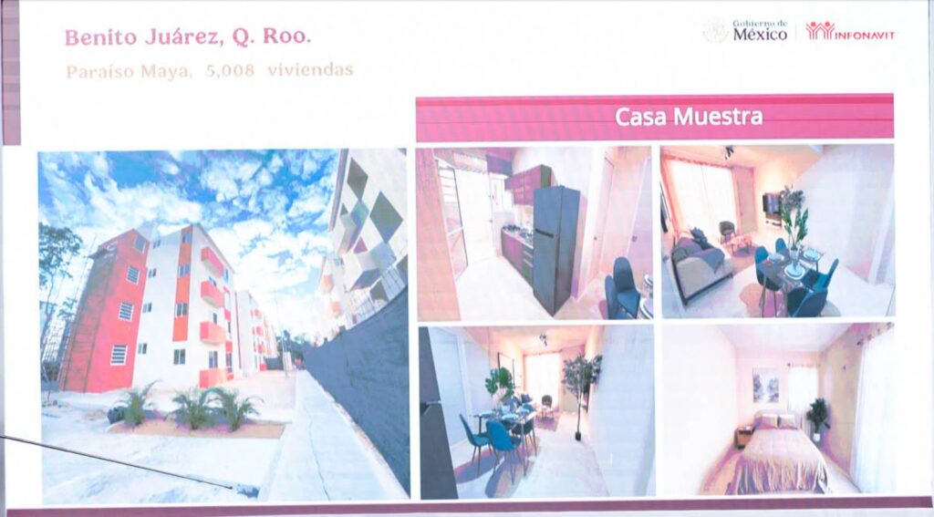 “Durante seis años van a ser: 5 millones de crédito reestructurados, para quien ya tiene vivienda y no podía pagarla, y además un millón 300 mil viviendas nuevas de por lo menos 60 metros cuadrados, lugares dignos, con acceso a todos los que tienen entre uno y dos salarios mínimos de ingreso y luego 430 mil mejoramientos de vivienda. Y luego aparte para todos los que no tienen Infonavit y que tienen FOVISSSTTE también va a haber construcción de viviendas y además para todos los que no tienen ni FOVISSSTE ni Infonavit. Y ahora ya estamos entregando vivienda en el primer año de Gobierno”, puntualizó en la conferencia matutina: “Las mañaneras del pueblo”.