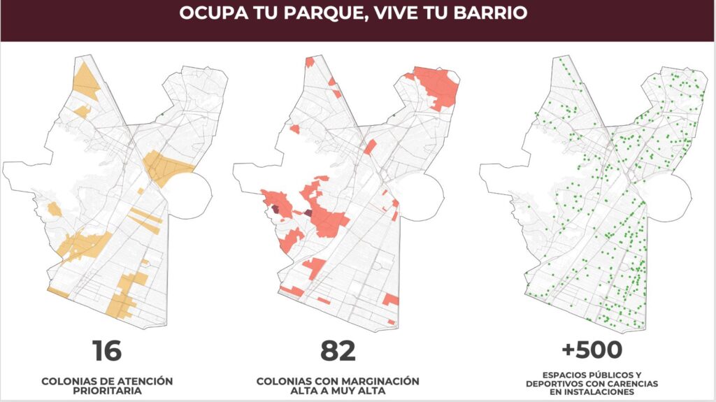 Roberto Ríovalle Uribe, coordinador de espacios públicos, mencionó que hubo un análisis previo para determinar los sitios a intervenir, cuyos objetivos principales son reducir la inseguridad, reconstruir el tejido social, recuperarlos para las familias y mejorar la calidad de vida de la población.